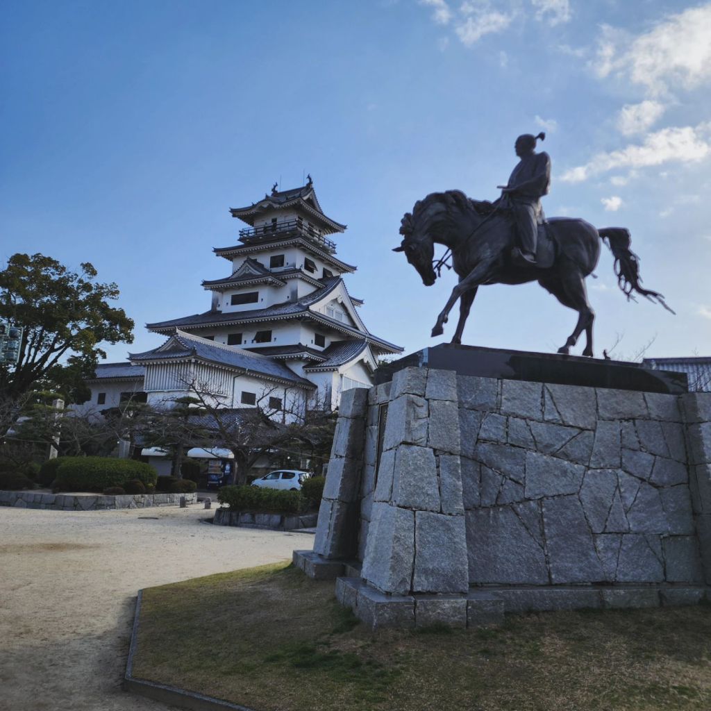 I passed by Imabari castle (picture from the previous day) and had to stop in a drug store to buy safety pins to fix my big hat. The wind was so bad that it broke the small copper wire holding the head rest to the hat. My hat also ended up in someone’s muddy field.