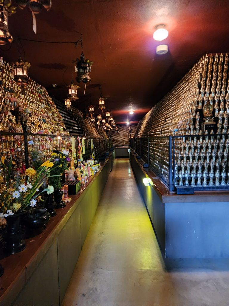 There was a stairway down, almost like a subway stop, but in a small cave were thousands of figures. Even though my back hurt and I was tired, I am happy to have found that underground room.
