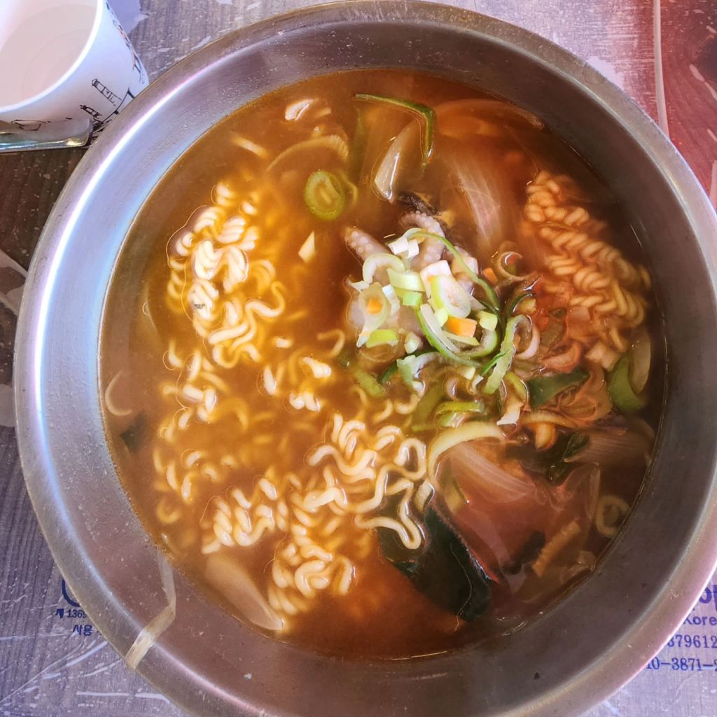 I had a spicy seafood ramen with a couple of dentists from Singapore. We then moved to MI Po, another Port to pick up people who took a beach train down.